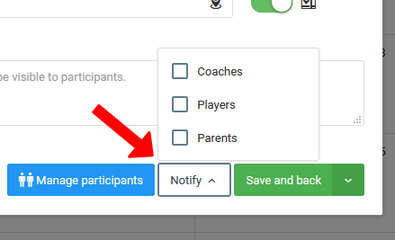 Під час створення тренування у вас є можливість скласти список учасників тренувань (гравці) та тренерів (персонал). Вибраний список гравців буде узгоджуватися зі списком гравців у списку відвідувачів при його перевірці. Серед інших буде видно список тренерів, позначених як персонал тренування в план-конспекті. З цього місця ви також можете призначити гравця з іншої команди один раз для запланованих тренувань. Повідомлення учасників про тренування ґрунтується на підборі груп користувачів, до яких воно повинно бути надіслане. Воно з’явиться як у мобільному додатку, так і в онлайн-версії системи.